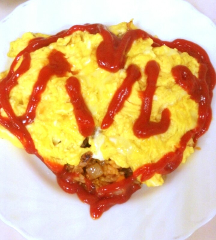 ハル〜!まかないのオムライス(?)だよ〜(^ヮ^)/俺は卵を割ったよ〜