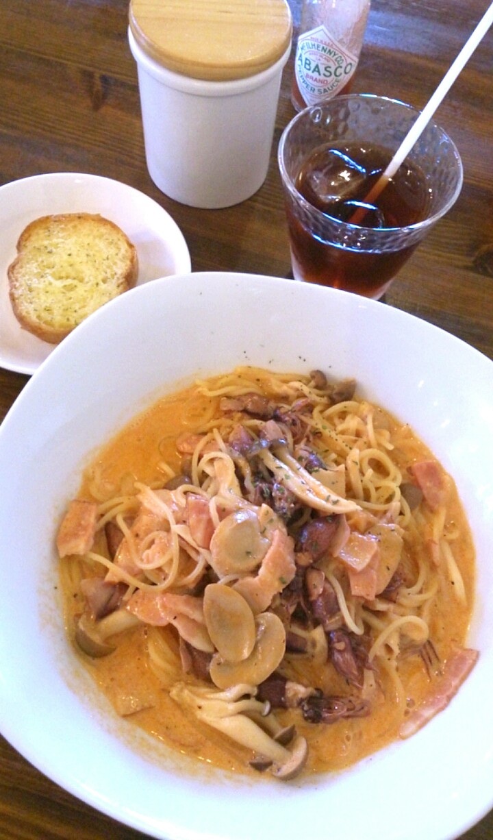 ホタルイカとキノコのトマトクリームソース…!美味しかった(*^ヮ^*)